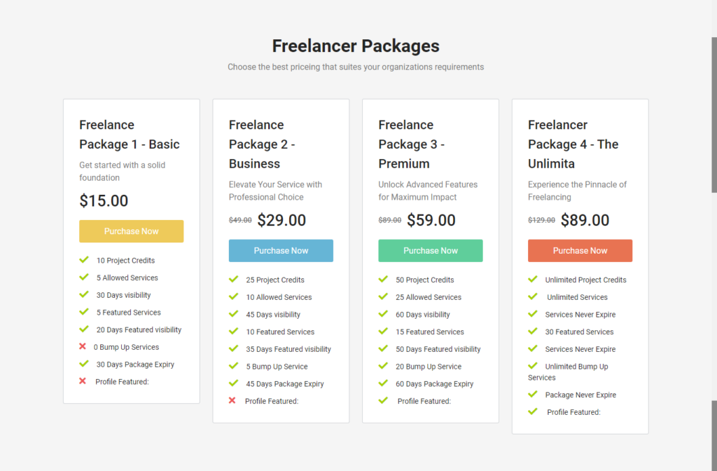 4. Current Package – Show current package for freelancer